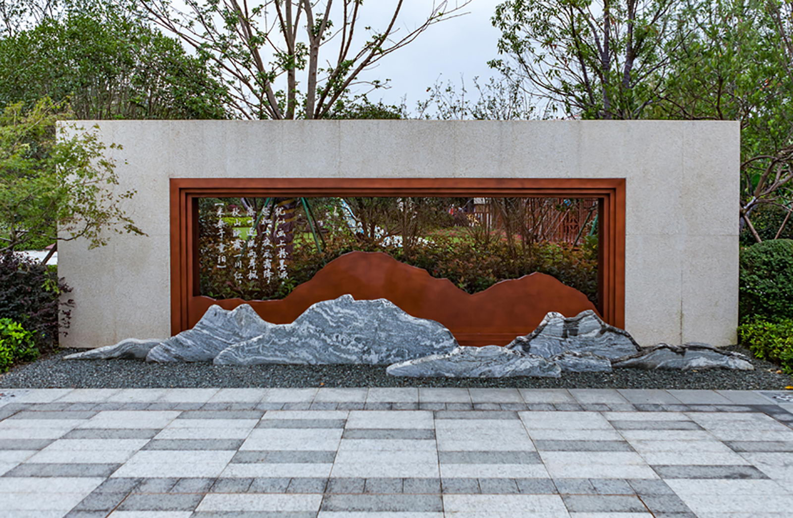主題旱溪借用蘇州古典園林“破隅” 設(shè)計(jì)手法,以微縮旱溪作為耒水一隅一脈,與耒水虛實(shí)輝映,以小見(jiàn)大,互妙相生。