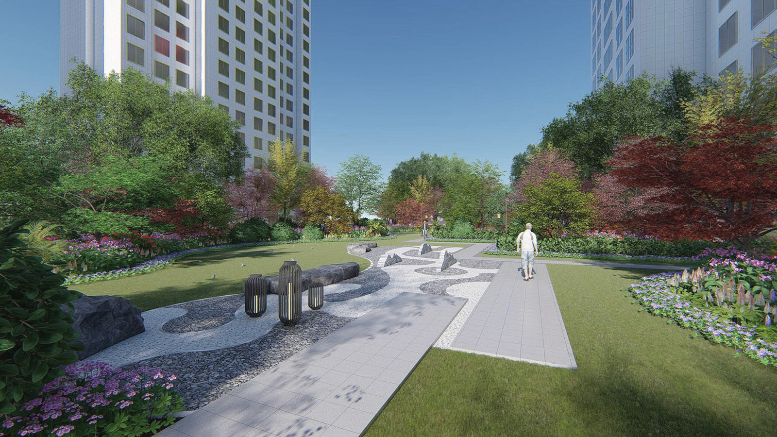 4、特色造型雕塑點(diǎn)綴,烘托浪漫氣氛,林蔭小路,提供牽手散步的場(chǎng)地,為情侶打造幸福世界;