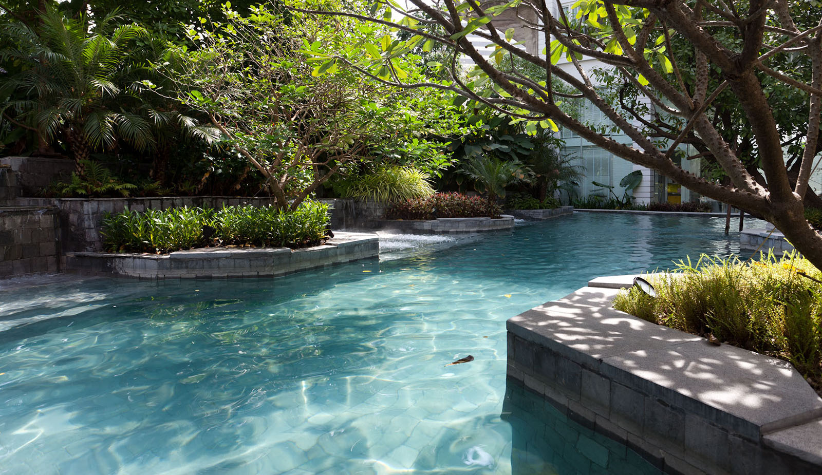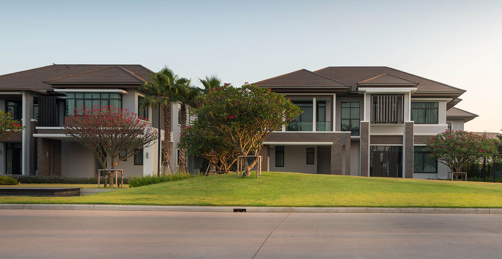 景觀設計時我司專門組織設計是遠赴新加坡游學,深入理解晉合集團開發理念,將新加坡的特別濃郁的度假式的景觀思維與傳統的蘇州園林的文化意蘊相結合,并且在在公共區域之外,別墅庭院采用統一風格韻味下不同的針對性、定制型設計,最后表現出來的即是晉園別墅這種極具具有東方詩意、度假風情的稀缺純墅區景觀。景觀領域的成功,大大增強了別墅本身的價值,也是后來墅區受惠于金雞湖版塊之外產生極高溢價的另一重原因。