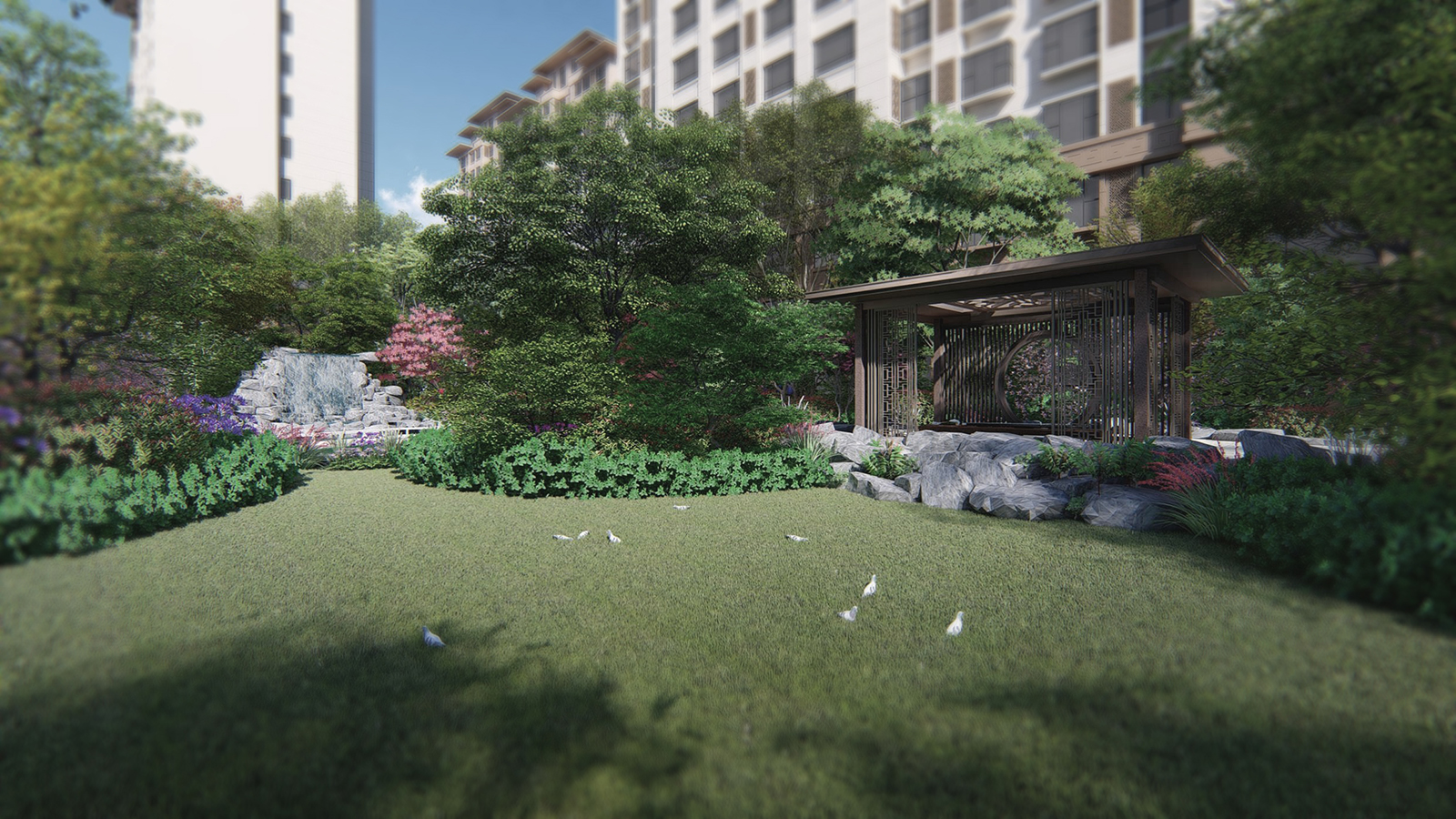 本案私園內布置小而精的藝術性的小品,