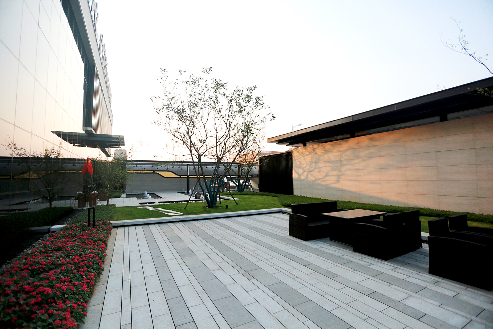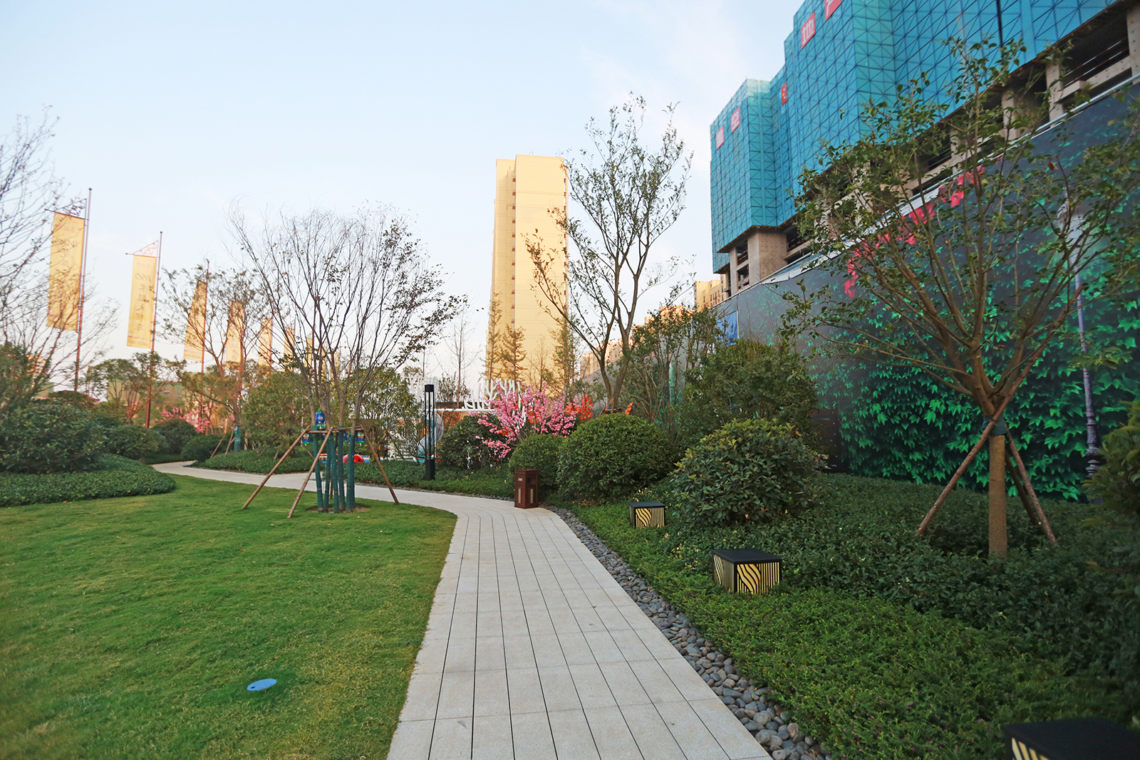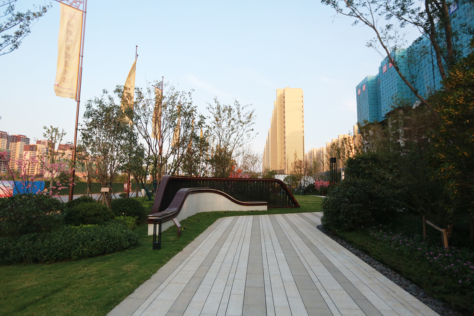 置業(yè)顧問引導客戶到達休閑平臺,空間開闊,綠植分布周圍,對景草階現(xiàn)代新穎,草坪上散布的藝術裝置增添景觀亮點,為客戶創(chuàng)造心曠神怡的身心感受,品味整個示范區(qū)的優(yōu)雅品質(zhì)。
