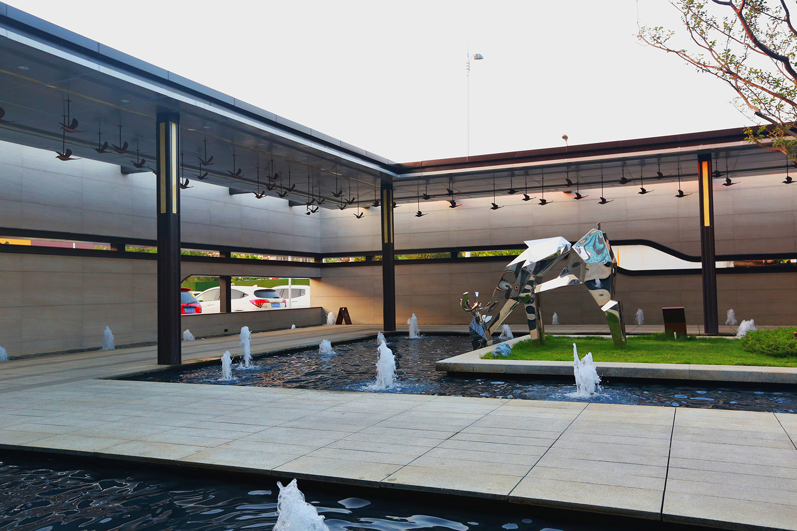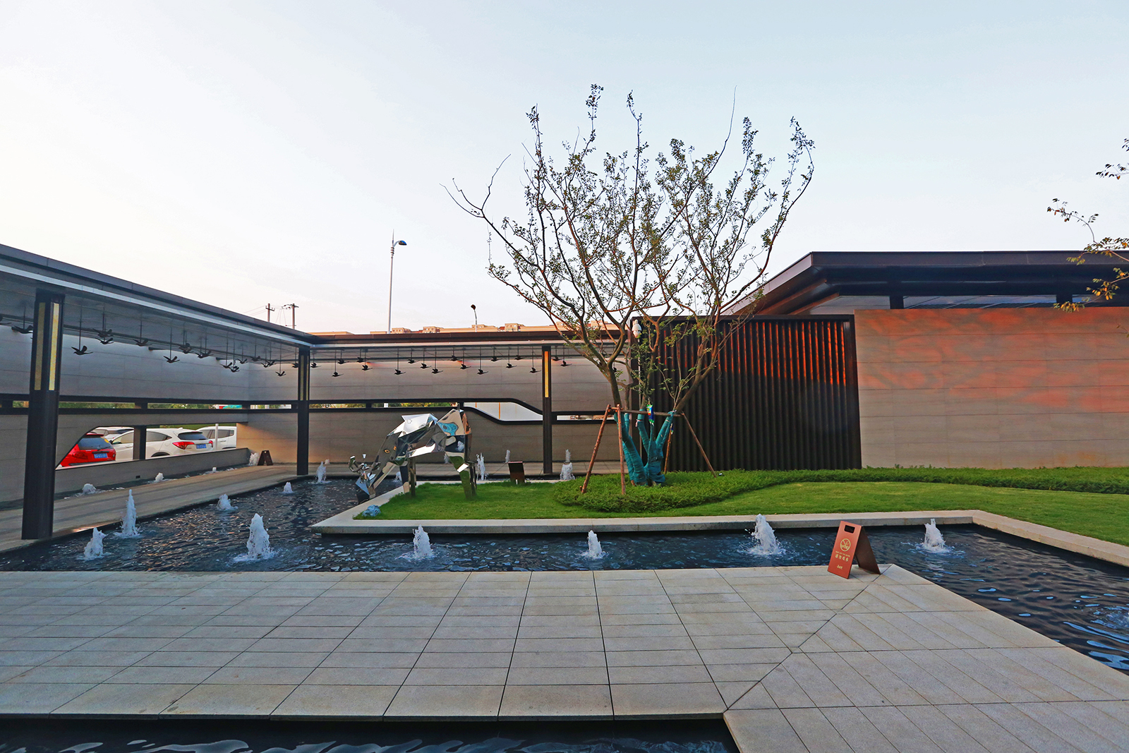 以現(xiàn)代的手法表現(xiàn)傳統(tǒng)的空間轉(zhuǎn)折關系,采用化整為零、先藏后露、引人入勝的布局,使整個空間處于多個維度之中,景觀視線不斷變化,使人流連忘返。