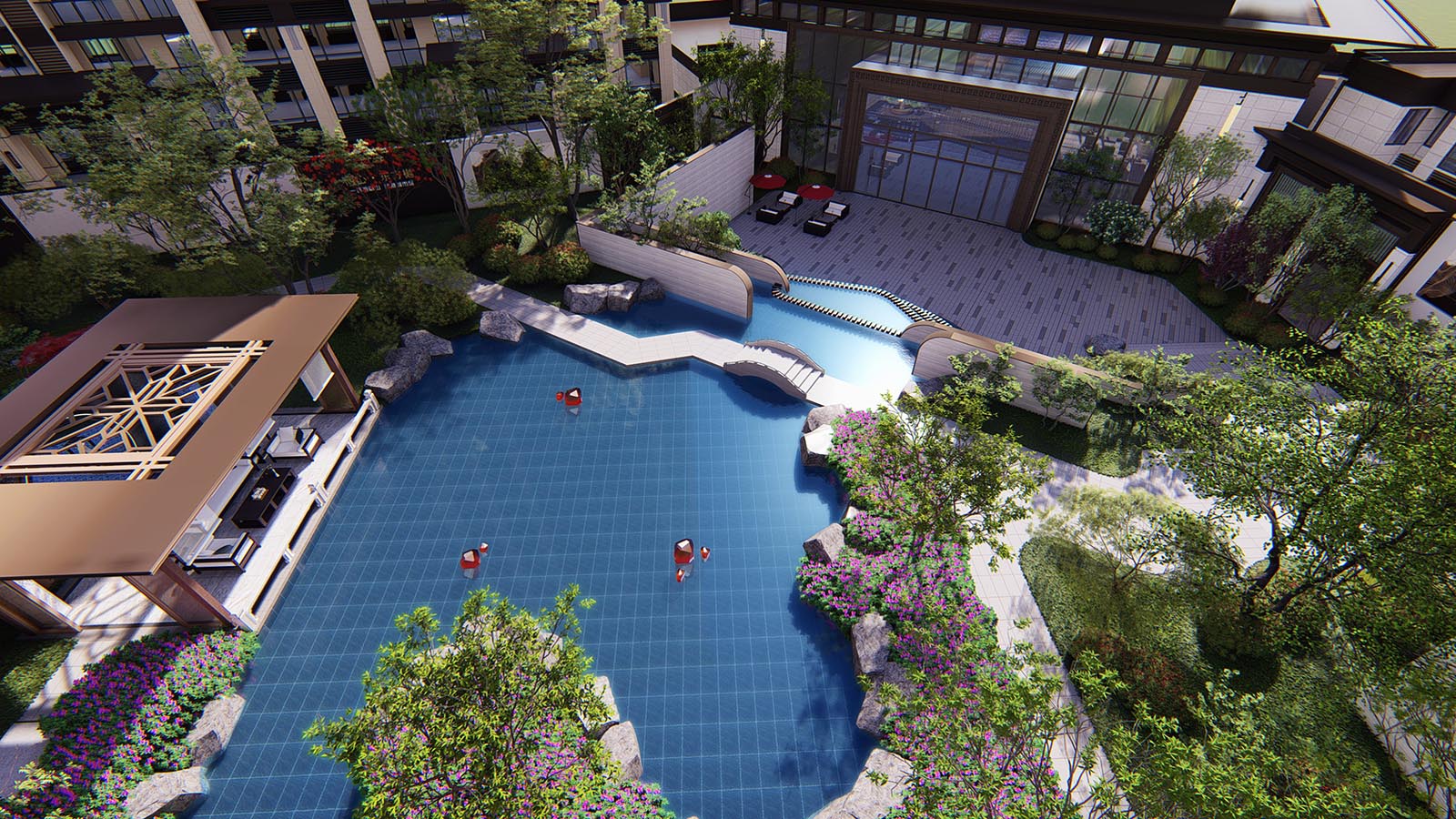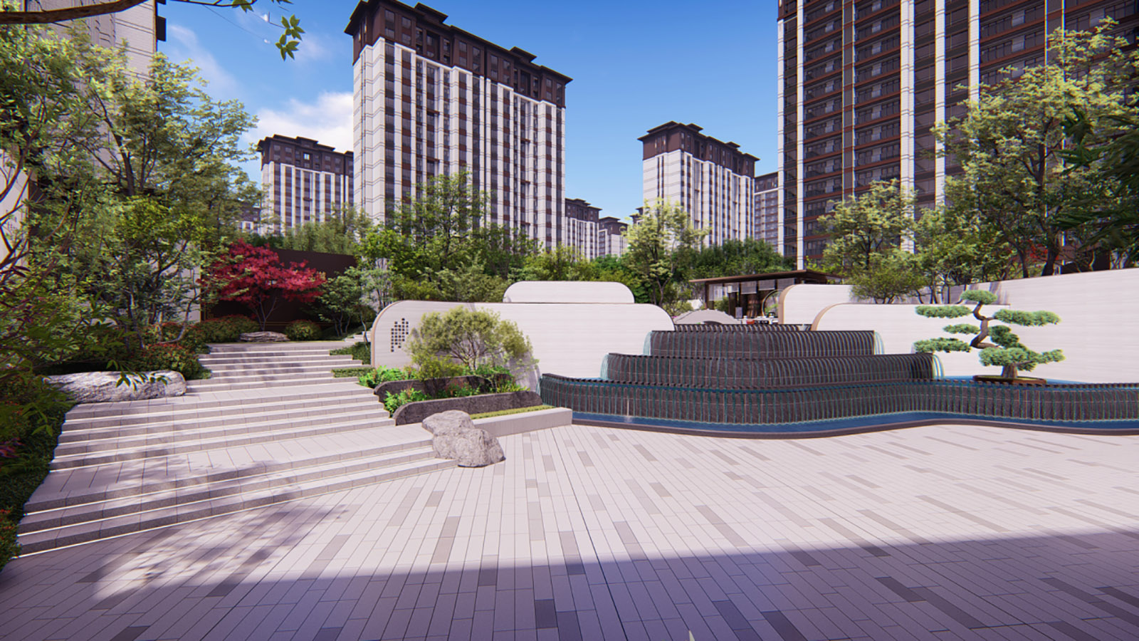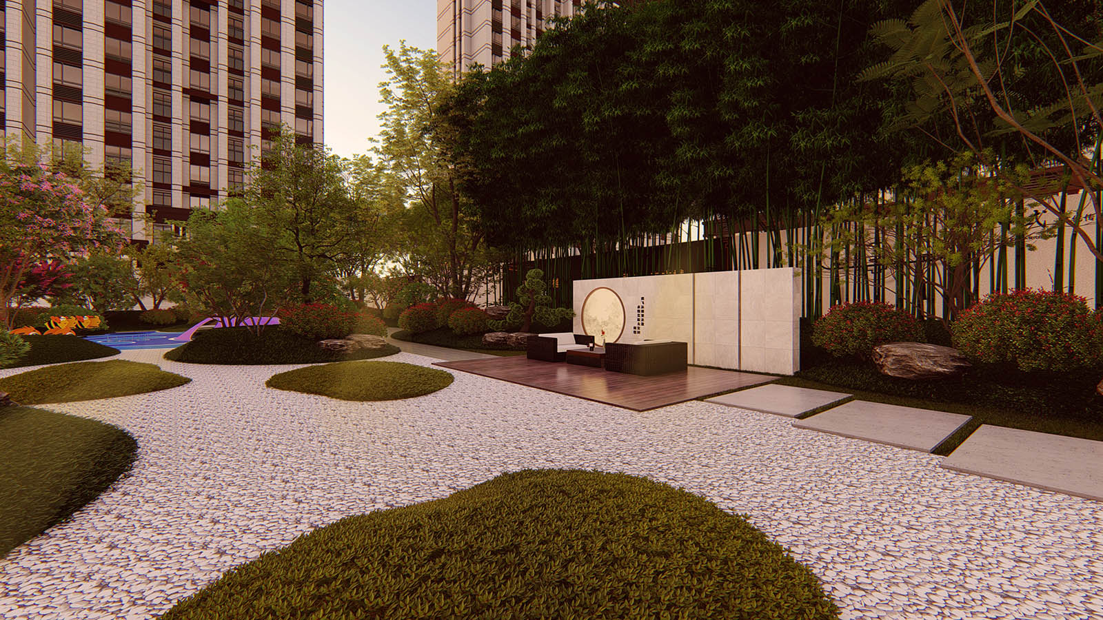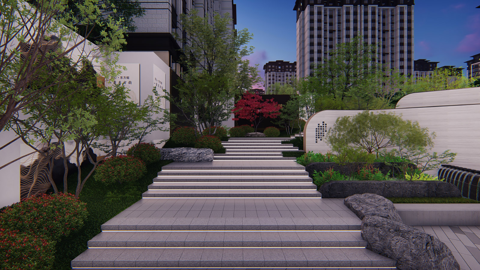 層層遞進式的景觀空間,突出場地精神。 蓄勢、禮儀、休閑、靜雅、禪意、生活。