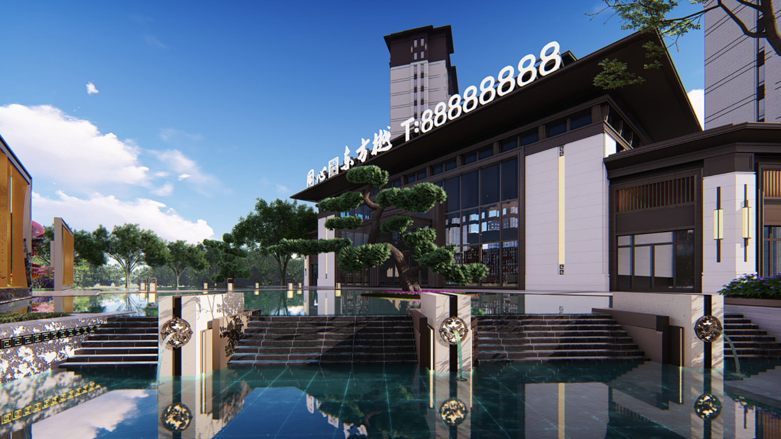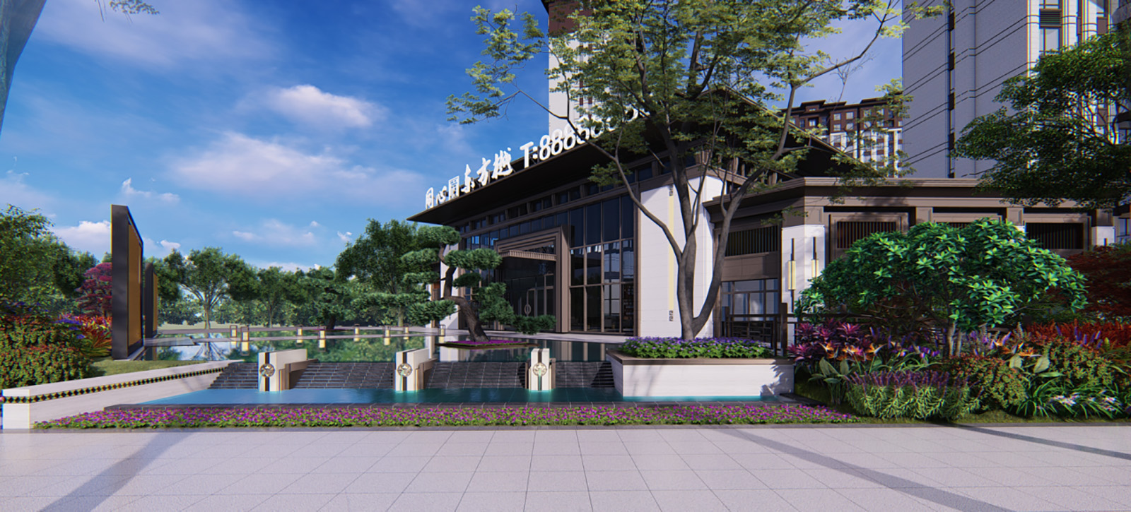 售樓部內望出如身居山川秘境,氣象萬千,胸有丘壑,目存山河。