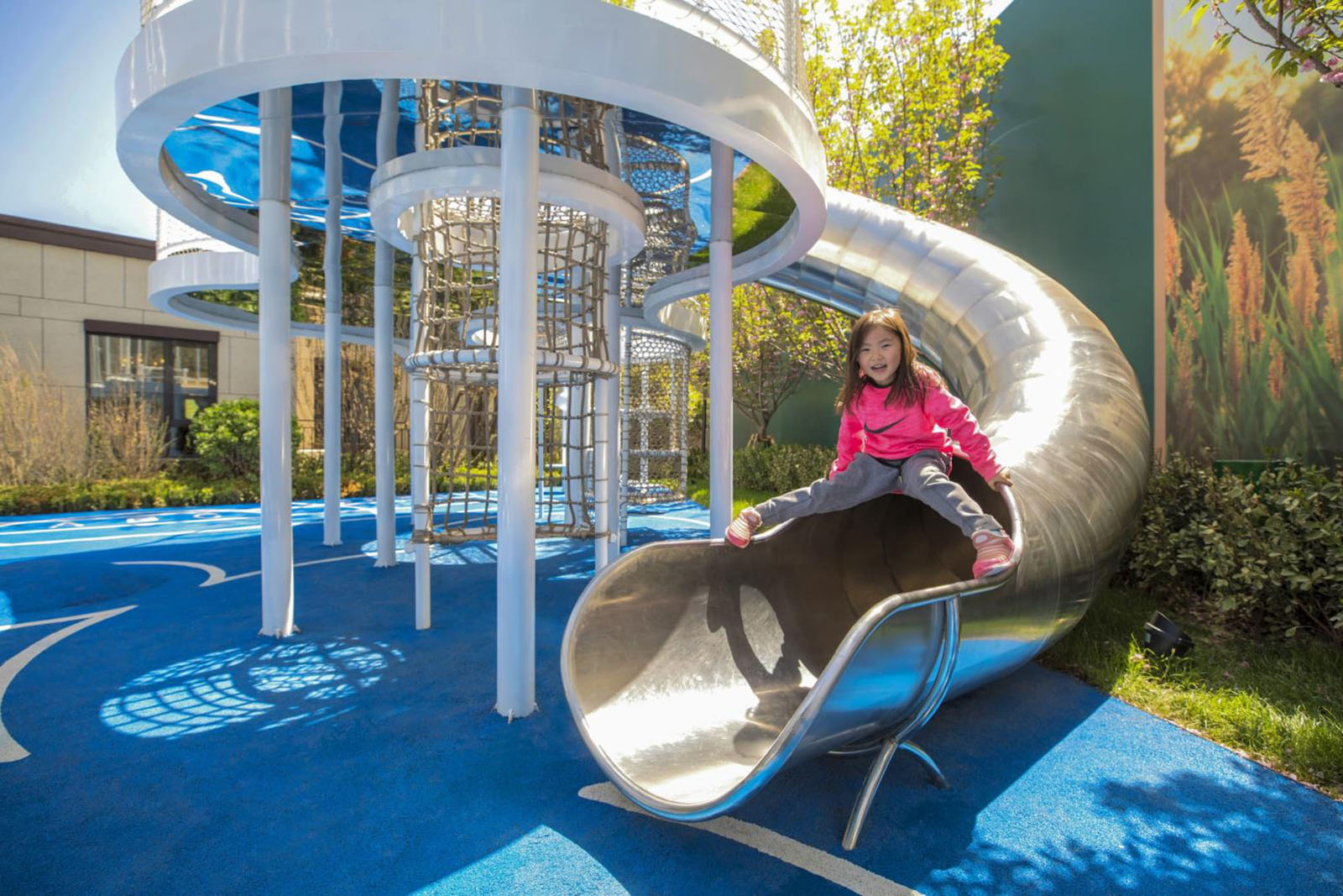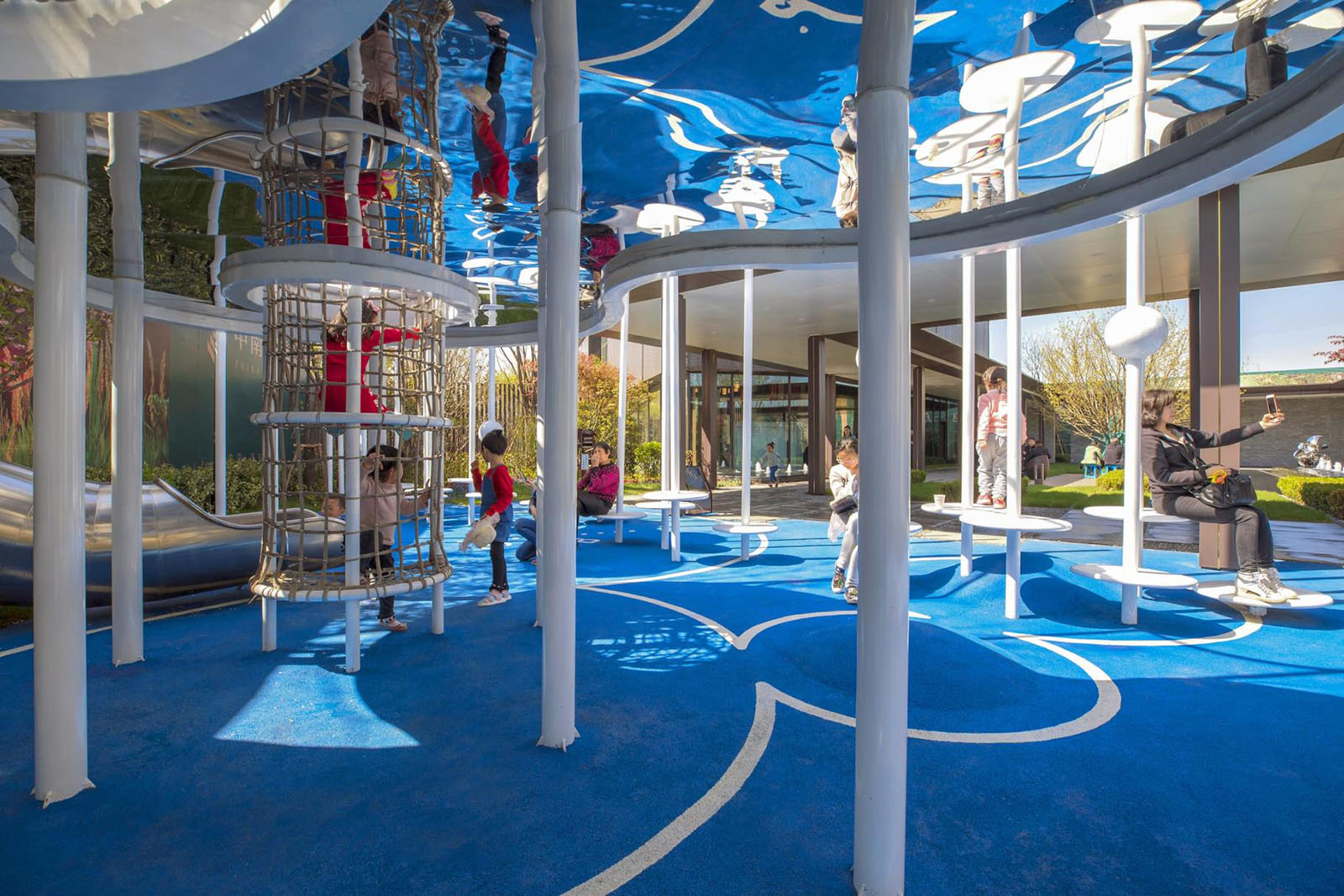 特別設(shè)計的云鏡主題滑梯為主景,讓兒童感受云與天空倒影的幻夢鏡光。