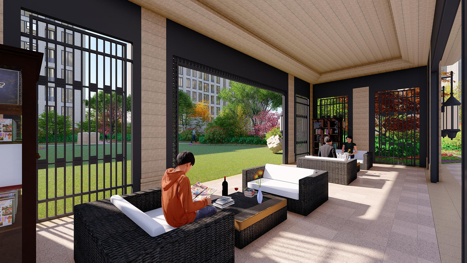 書香花園作為本案溫暖、人性化的設(shè)計標(biāo)志亮點——為高端居住業(yè)主打造陽光書房、書香院落,打造宅前、窗前雅致空間 ,人性化關(guān)懷貫穿始終。旨在為業(yè)主創(chuàng)造一個促進鄰里、入學(xué)兒童交流、休閑讀書空間,休閑讀書平臺,作為整個主題區(qū)核心的庭院空間,既可讓業(yè)主暢享周末的歡愉時光,更可在別具新古典韻味園林空間中,品味風(fēng)雅,于園中吟詩作對、品茗讀書,幸福棲居。