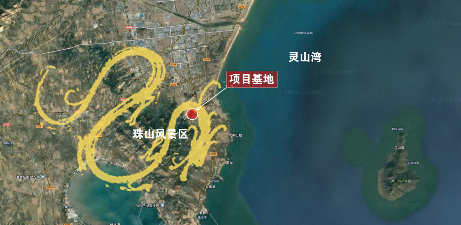 項目地塊西南靠山大珠山風(fēng)景區(qū),東面臨海靈山灣,紫氣東來,靈山風(fēng)景區(qū)近在眼底,大珠山山脈自西向東,有祥龍走海,風(fēng)水起興之勢,大空間上形成山環(huán)水抱、藏風(fēng)聚氣的上風(fēng)上水格局。